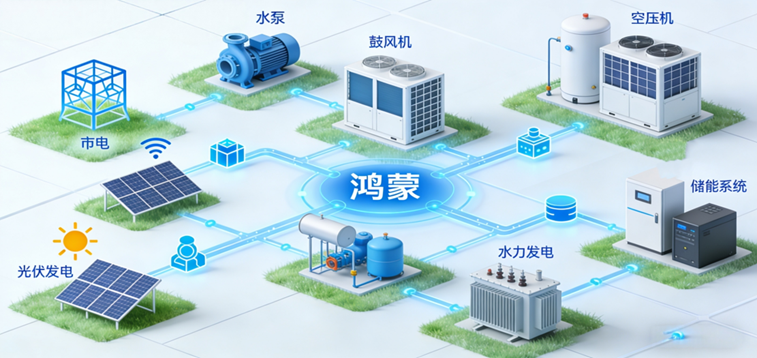 该平台犹如水厂的“能源最强大脑”,依托鸿蒙分布式软总线、鸿蒙AI与边缘智能等技术优势,将全厂发电、用电、储能设备连接成一张智能网络,全域资产实现统一纳管与协同互联,实现能效与效益双赢: