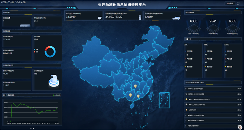 电网、光伏发电、水力发电、储能系统共同构成三水厂多能协同互补的清洁供能格局,实现了“水光相济、储充协同”。但多元的能源系统,为水厂众多的生产设备供电,在保障用电安全的前提下,如何实现高效协同、智能调度以及环保效益、经济效益的最大化?龙华水务公司创新实践,建设了鸿蒙原生智慧能源管理平台。